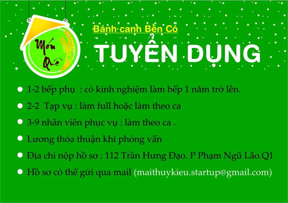 Quán Bánh canh Bến Có cần tuyển