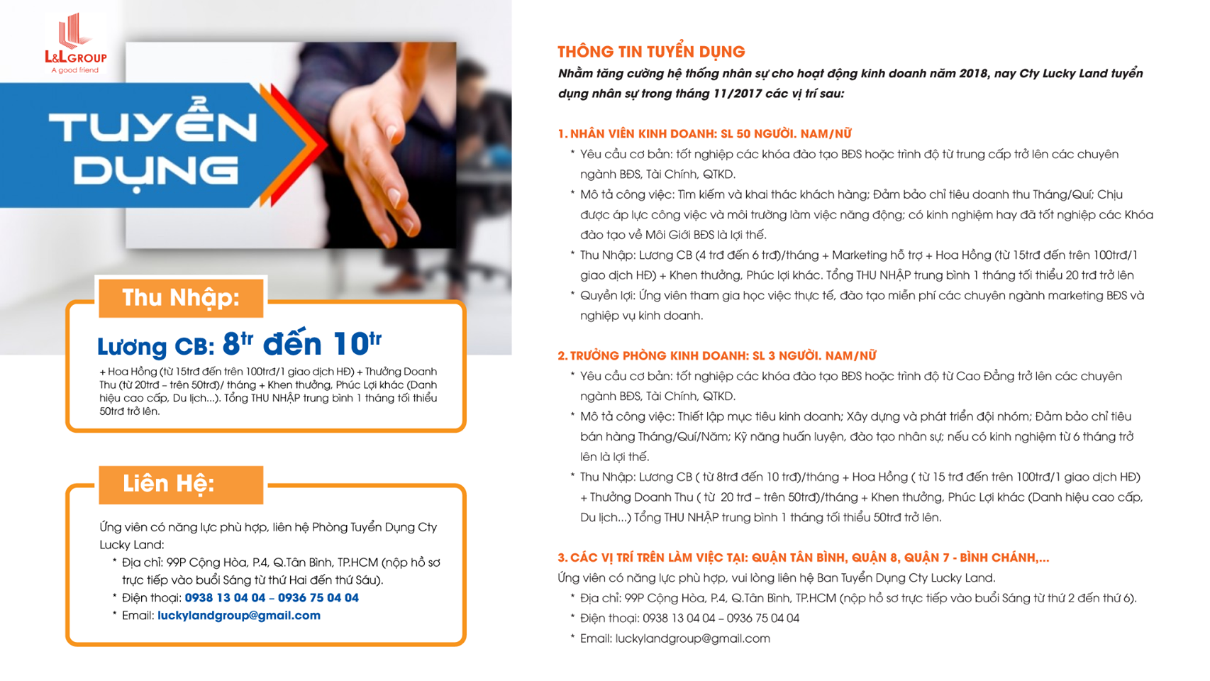 Ứng viên có năng lực phù hợp, vui lòng liên hệ Ban Tuyển Dụng Cty Lucky Land.