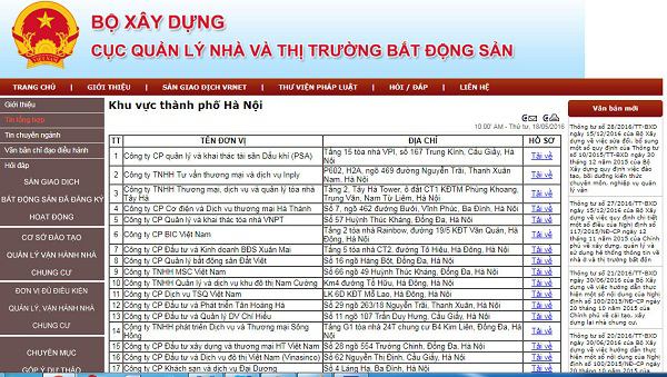 Danh sách các đơn vị quản lý vận hành nhà chung cư đủ điều kiện tại Hà Nội.