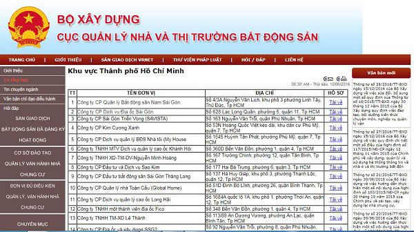 Danh sách các đơn vị tại TPHCM đăng ký thông tin đủ kiều kiện quản lý tòa nhà chung cư.