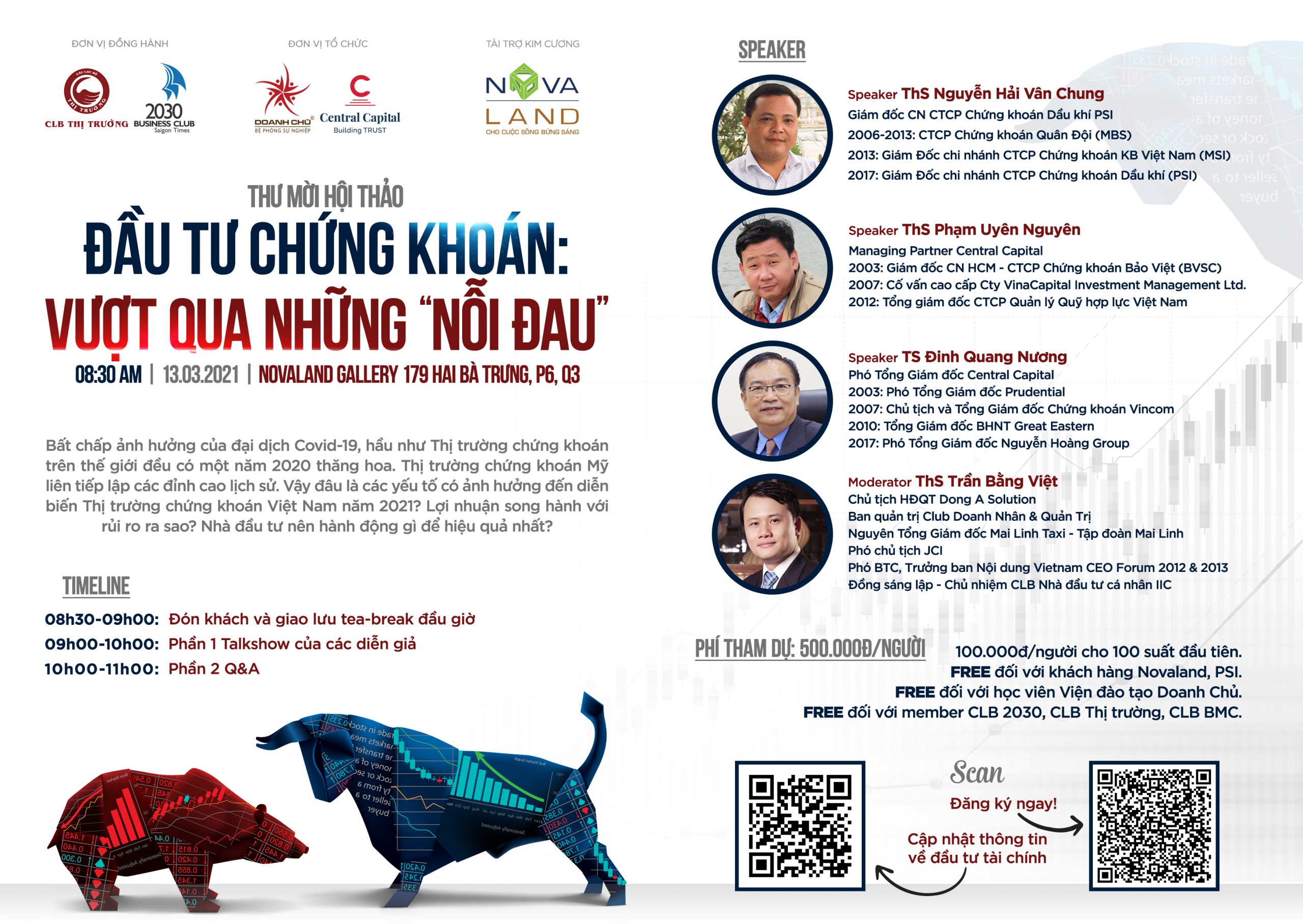 Tất cả câu trả lời sẽ có trong buổi hội thảo ĐẦU TƯ CHỨNG KHOÁN: VƯỢT QUA NHỮNG “NỖI ĐAU” được chia sẻ từ những thất bại & chiến thắng của các chuyên gia hơn 20 năm kinh nghiệm thương trường.