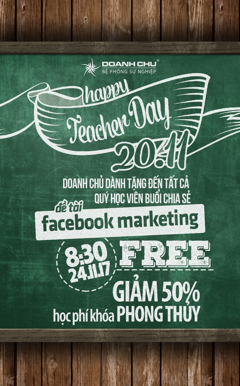Nhân dịp ngày Nhà giáo Việt Nam 20/11 sắp tới, thay lời tri ân Viện đào tạo Doanh Chủ gửi tặng quý học viên chương trình ưu đãi cực lớn: