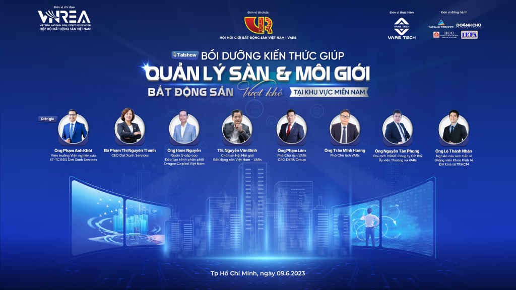 Thuộc chuỗi chương trình “Bồi dưỡng kiến thức giúp Quản lý Sàn và Môi giới Bất động sản vượt khó” do Hội Môi giới Bất động sản Việt Nam – VARs phối hợp cùng Viện đào tạo Doanh Chủ, Đất Xanh Services và các đơn vị đào tạo phía Nam tổ chức. Buổi talkshow với chủ đề “Môi giới Bất động sản và sứ mệnh vực dậy niềm tin thị trường bất động sản Việt Nam” hứa hẹn mở ra những hướng đi rõ ràng hơn dựa trên những điểm nghẽn và sự ảm đạm của thị trường Bất động sản cả nước.