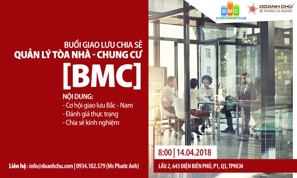Viện đào tạo Doanh Chủ trân trọng thông báo đến thành viên CLB Quản lý chung cư tòa nhà BMC và quý tập thể, cá nhân quan tâm đến lĩnh vực trên tham gia buổi họp mặt, giao lưu chia sẻ Quản lý chung cư – tòa nhà.
