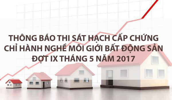 Công ty Cổ phần đầu tư và đào tạo Doanh Chủ thông báo về việc tổ chức kỳ thi sát hạch cấp chứng chỉ hành nghề Môi giới Bất Động sản tháng 05 năm 2017 như sau: