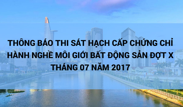 Viện đào tạo Doanh Chủ thông báo về việc tổ chức kỳ thi sát hạch cấp chứng chỉ hành nghề Môi giới Bất Động sản tháng 07 năm 2017 như sau: