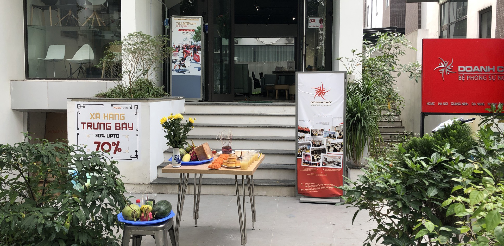 Trong không khí vui tươi đầu xuân, Doanh Chủ cũng đã chuẩn bị lễ vật cúng khai trương thật tươm tất ở cả hai chi nhánh. Các lễ vật cũng như thủ tục cúng khai trương được cố vấn từ Thầy Phong thủy Nguyễn Duyên Linh – Top 10 Nhà phong thủy nổi tiếng nhất Việt Nam và cũng là giảng viên lâu năm tại Doanh Chủ ở các khóa Phong Thủy Ứng Dụng, Phong Thủy Nâng Cao, Phong Thủy Tết,…