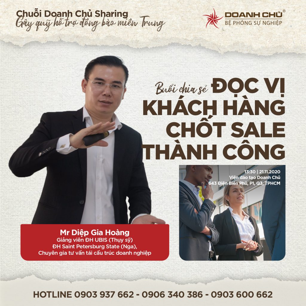 [21/11 13h30] Đọc vị khách hàng – Chốt sale thành công – Mr Diệp Gia Hoàng Giảng viên trường ĐH UBIS (Thụy sỹ) ĐH Saint Petersburg State (Nga), Chuyên gia tư vấn tái cấu trúc doanh nghiệp