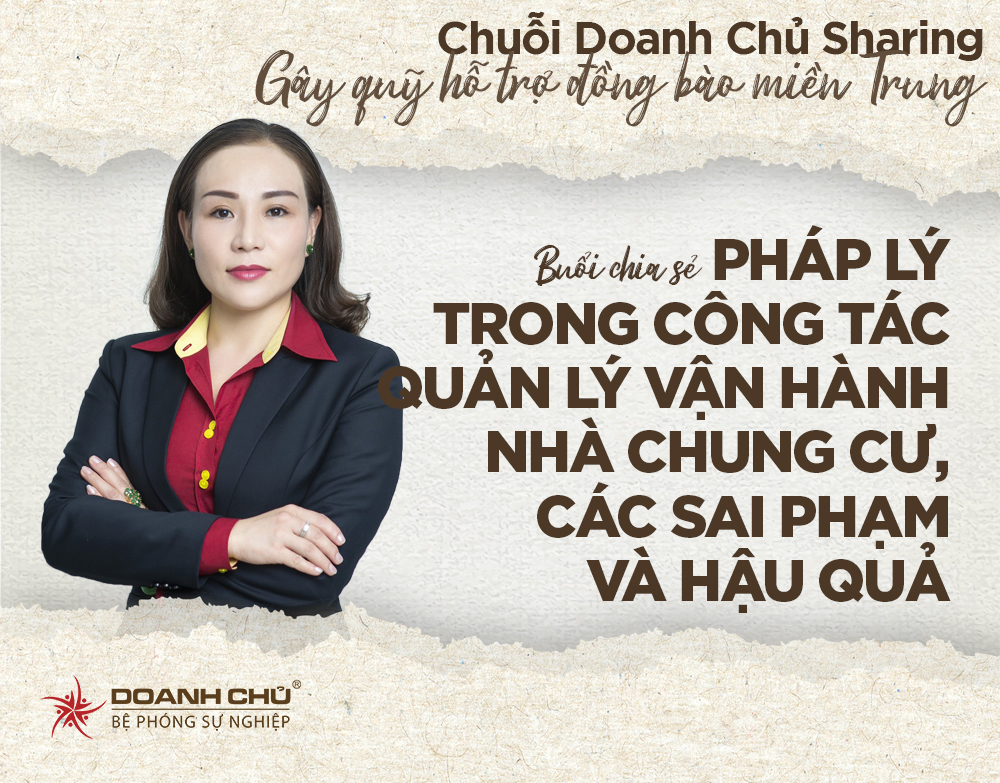 Do đó để mọi người kịp thời hạn chế những sai phạm, hình dung được mức độ thiệt hại cũng như thấy được những hậu quả có thể xảy ra, Viện Đào tạo Doanh chủ tổ chức buổi Sharing với chuyên đề “PHÁP LÝ TRONG CÔNG TÁC QUẢN LÝ VẬN HÀNH NHÀ CHUNG CƯ, CÁC SAI PHẠM VÀ HẬU QUẢ” với sự chia sẻ của Luật sư Nguyễn Thị Mỹ Viễn – Chủ tịch HĐQT CÔNG TY CỔ PHẦN DỊCH VỤ QUẢN LÝ BẤT ĐỘNG SẢN NHÀ TÔI.