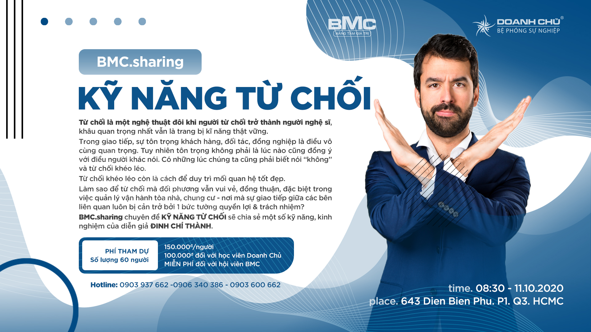 BMC.sharing chuyên đề   “KỸ NĂNG TỪ CHỐI”  sẽ chia sẻ một số kỹ năng, kinh nghiệm của diễn giả Đinh Chí Thành.