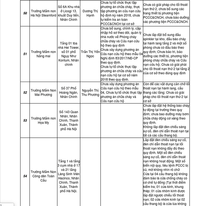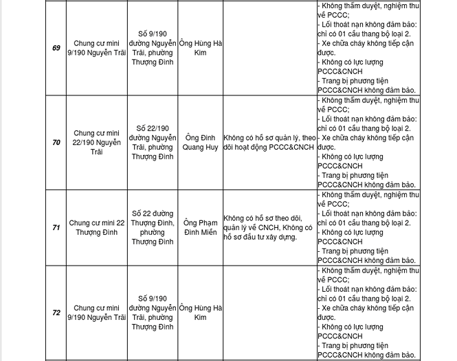 Ngoài ra, hàng loạt chung cư mini, trường học, trung tâm thương mại… cũng bị bêu tên vi phạm về PCCC.