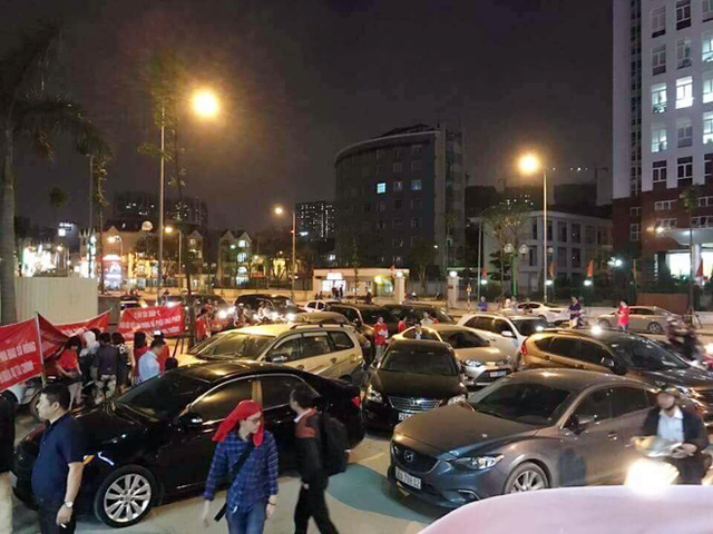 (Cư dân Hồ Gươm Plaza để xe tràn ra ngoài phản đối chủ đầu tư tối 20-3)