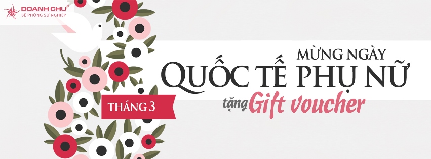 Niềm vui của mùa Xuân mới lan tỏa cùng tháng 3 với một ngày lễ đặc biệt dành riêng cho một nửa Thế giới: Ngày Quốc tế Phụ Nữ 8/3. Cùng bạn gửi gắm thêm nhiều yêu thương cho những người Phụ Nữ bạn yêu, Doanh Chủ hân hoan dành tặng bạn nữ những ưu đãi đầy ngọt ngào trong dịp này: